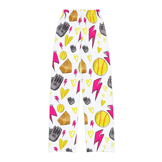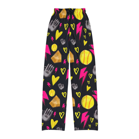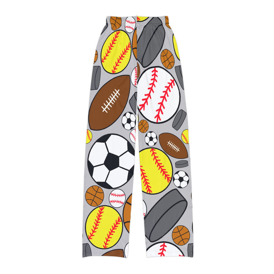 Sports Kids Pajama Pants - Gray Super Soft and Cozy with Soccer Balls, Hockey Pucks, Footballs, and Baseballs